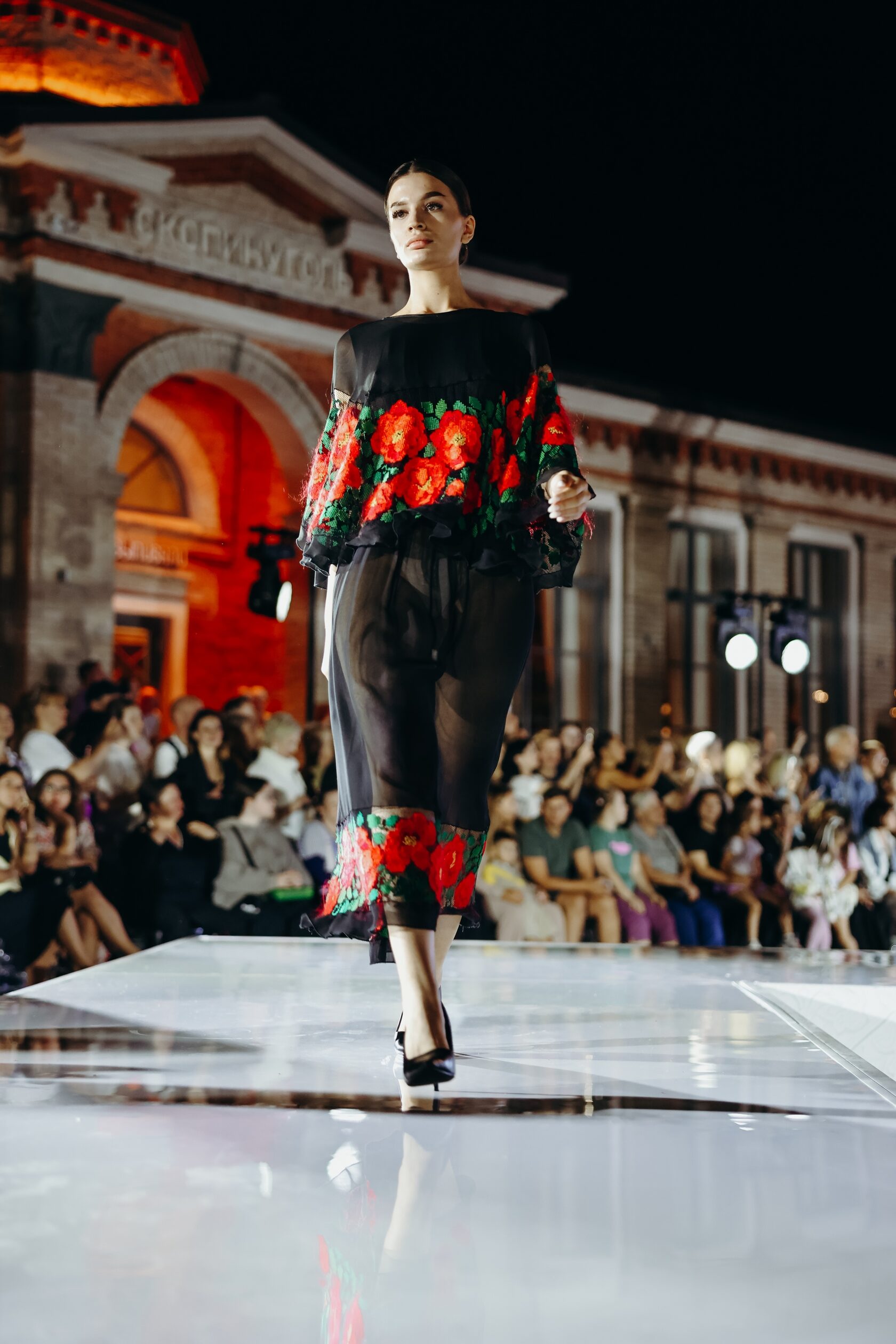 Показ стал настоящим путешествием во времени и стилях, где история народного костюма соединилась с современностью и высокой модой. Аутентичная коллекция народных костюмов Рязанской губернии XIX века как отправная точка традиции, мода эпохи возведения Рязанской ВДНХ, современные платья 2000-х годов, отражающие динамику нового тысячелетия, эстрадные костюмы в русском стиле, ярко представляющие народные мотивы на сцене, работы современных дизайнеров, которые через культурный код и элементы народного костюма создают новые смыслы и образы, включая использование техник и мотивов народных художественных промыслов.